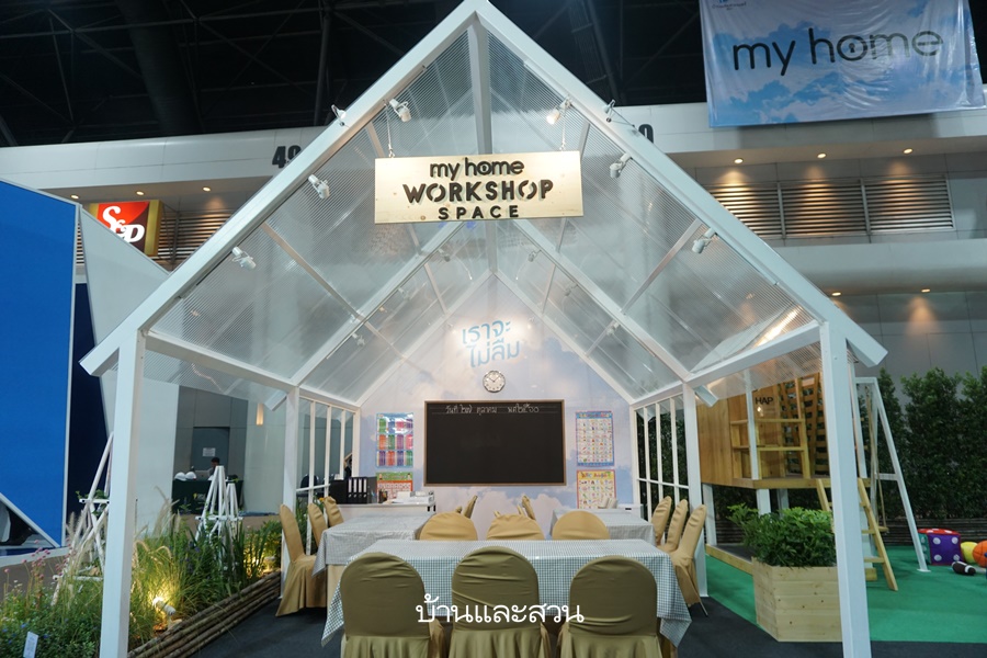 การตกแต่งบ้านในแบบผสมผสาน รวมพื้นที่นิทรรศการ และส่วนของการจัดเวิร์คช็อปเป็นหนึ่งเดียว โดยสร้างอารมณ์ของการทำเวิร์คช็อป ภายใต้ ธีม “ My home school ด้วยอาคารเรียนจากภาพจำสมัยเด็กๆ เพื่อให้เกิดความคุ้นเคย และระลึกถึงความทรงจำดีๆ นอกจากนี้ยังมีการนำส่วนตกแต่งมาจัดวางให้มีมุมถ่ายรูป ที่สนุกเหมาะสำหรับเด็กๆ และสร้างแรงบันดาลใจให้กับผู้ใหญ่ได้นำไอเดียไปจัดตกแต่งบ้านได้ และพื้นที่เวิร์คช็อปที่คุณสามารถมาลงมือรังสรรค์ด้วยตัวเอง