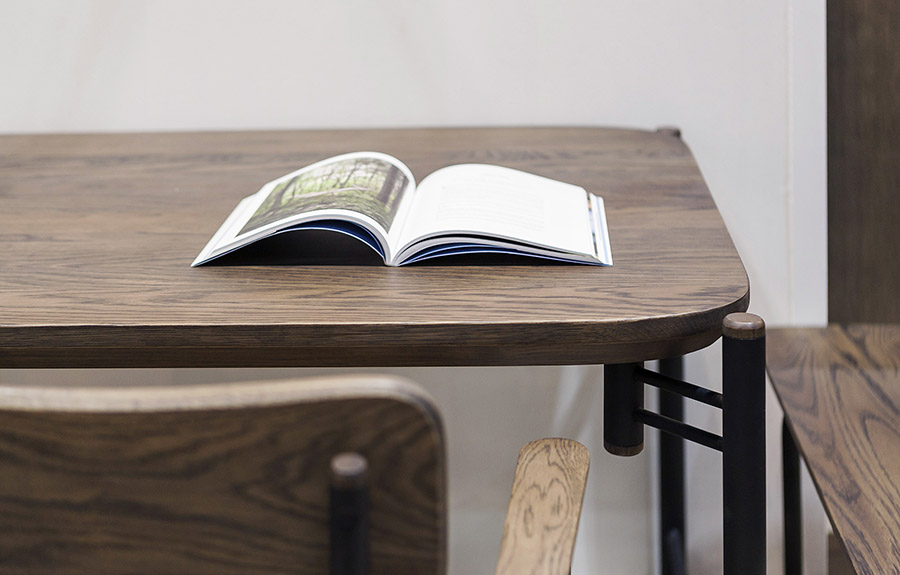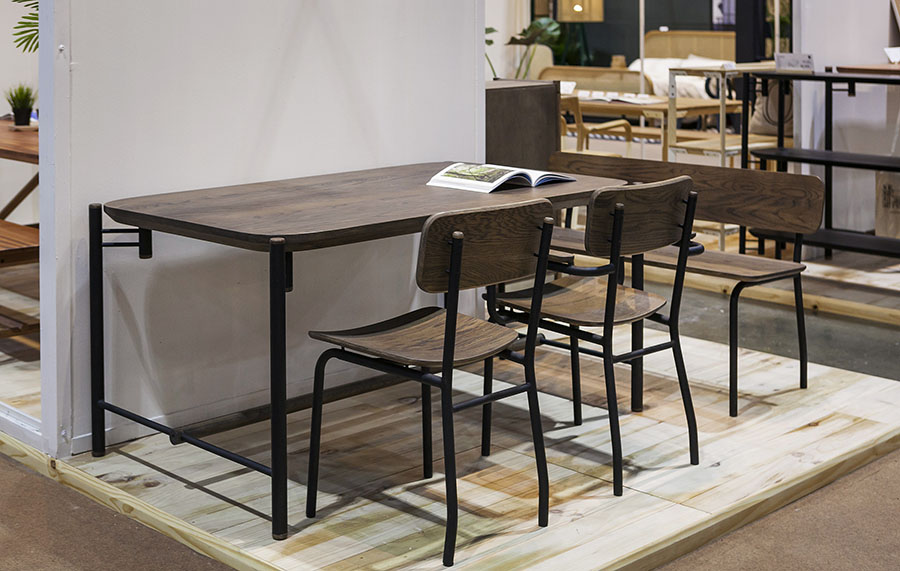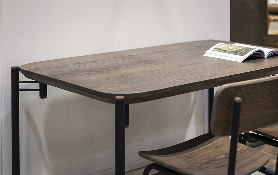 คอเลกชั่นพิเศษนี้เป็นความร่วมมือของนักออกแบบไทยและญี่ปุ่น โต๊ะกินข้าวสไตล์มินิมัล รูปทรงกะทัดรัดเหมาะสำหรับบ้านที่มีพื้นที่จำกัด ท็อปโต๊ะทำจากไม้โอ๊คย้อมสี ซึ่งมีให้เลือกทั้งสีวอลนัท สีไวท์โอ๊ค และเรดโอ๊ค ขาโต๊ะทำจากเหล็กพ่นพาวเวอร์โค้ท เนื้อด้านสัมผัสละเอียด สามารถเลือกสีได้ตามสไตล์ห้องของคุณมีทั้งสีขาว ครีม น้ำเงินและดำ มีความเป็นเอกลักษณ์ด้วยการเชื่อมต่อของโครงเหล็กและฐานประกบด้วยท็อปไม้ลบเหลี่ยม มาพร้อมกับเก้าอี้ดีไซน์เข้าเซตที่มีให้เลือกหลากหลายแบบทั้ง เก้าอี้มีพนักพิง เก้าอี้มีที่วางแขน เก้าอี้ม้านั่งยาว เป็นต้น