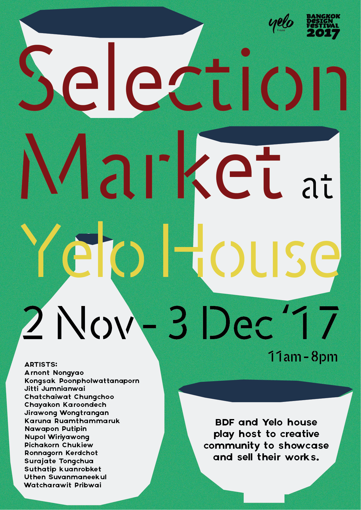 แล้วกาลเวลาก็กำลังจะเคลื่อนผ่านมาบรรจบครบรอบ 10 ปีของการจัดงาน Bangkok Design Festival (BDF) หรือ เทศกาลออกแบบบางกอก ซึ่งจัดขึ้นครั้งแรกในปี 2007 โดยมีจุดมุ่งหมายเพื่อเฉลิมฉลองวงการออกแบบและสร้างสรรค์ของไทยและนานาชาติ แต่ก่อนที่งาน BDF 2017 จะเริ่มต้นอย่างเป็นทางการในวันที่ 10 พฤศจิกายน ที่จะถึงไปจนกระทั่งวันสุดท้ายในวันที่ 3 ธันวาคม ศกนี้ Selection Market หรือ ตลาดของคนรักงานศิลปะ นิทรรศการอันเป็นส่วนหนึ่งของเทศกาลออกแบบบางกอก ได้ประเดิมเริ่มต้นขึ้นก่อนแล้วที่ YELO House หนึ่งใน 3 สถานที่จัดงานของ BDF ในปีนี้ และนี่คือ 3 เหตุผลที่ room มองว่า Selection Market ควรค่าแก่การไปชม