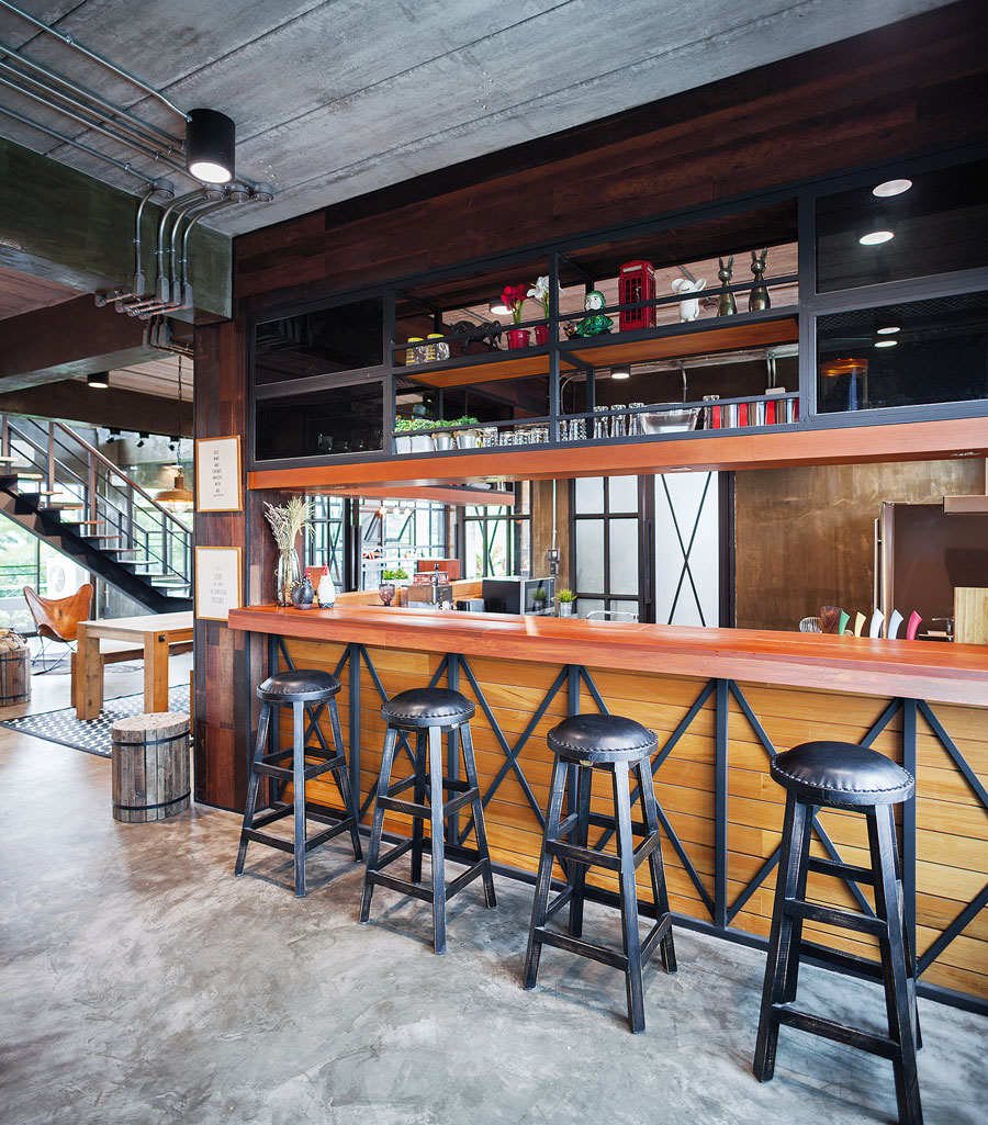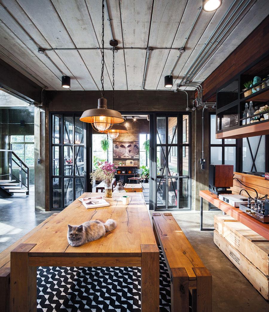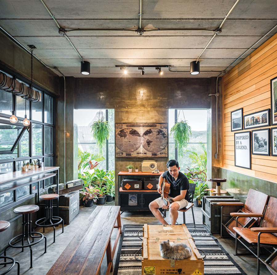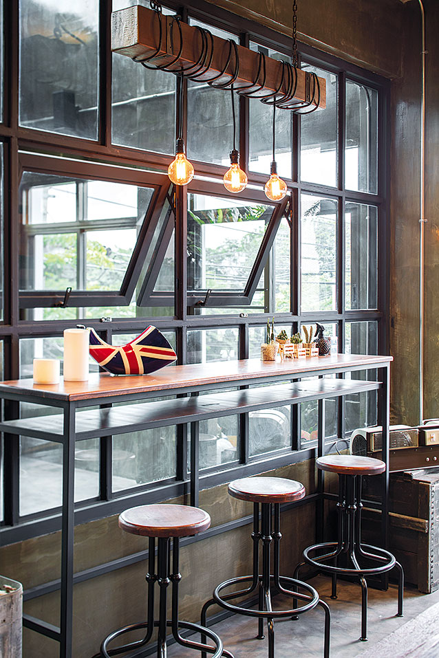 บ้านหลังนี้ซ่อนตัวอยู่ในอาคารพาณิชย์ขนาด 3 ชั้น โดยเปิดพื้นที่ชั้นล่างให้เช่าเป็นร้านสะดวกซื้อ ดังนั้นบันไดทางขึ้นบ้านจึงแยกออกมาเพื่อความเป็นส่วนตัวอย่างชัดเจน พื้นที่ของบ้านเริ่มต้นที่บริเวณชั้น 2-3 ด้วยมุมที่เปิดโล่งเหมือนห้องชุดแบบดูเพล็กซ์และดูดิบเท่ในสไตล์ลอฟต์ คล้ายเป็นบาร์กึ่งร้านกาแฟ เพราะนั่นมาจากความชอบของ คุณบี-ฉัตรชัย ฉัตรชุมสาย ผู้เป็นเจ้าของ![]()