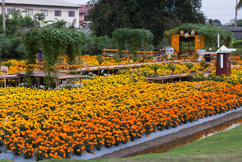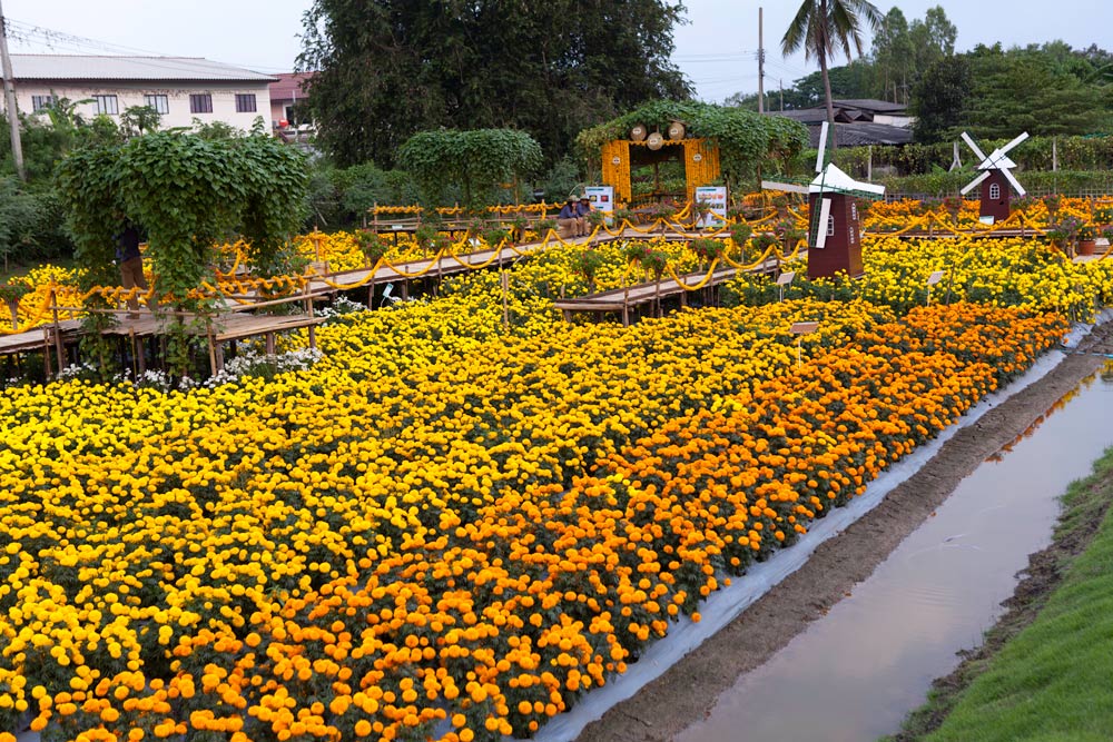 “แปลงดาวเรืองหลากสี” ทั้งพันธุ์ตัดดอกเพื่อการค้าและพันธุ์ปลูกประดับ เป็นอีกหนึ่งไฮไลต์ของงานที่เปิดให้ผู้มาเยี่ยมได้ถ่ายภาพกันแบบเต็มอิ่ม รับรองว่าถูกอกถูกใจคนรักไม้ดอกแน่นอน นอกจากนี้ยังมีสะพานไม้ไผ่หรือสะพานมอญแบบธรรมชาติ ให้คุณได้เดินถ่ายรูปอย่างสะดวกทั้งยังเป็นองค์ประกอบสวนน่ารักๆที่สามารถนำไปเป็นไอเดียจัดสวนที่บ้านได้ด้วย