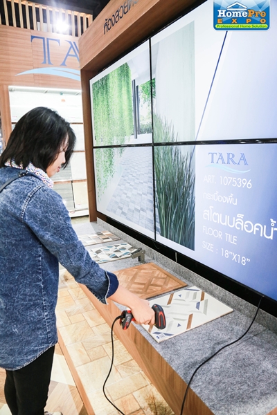 ทางด้าน “TARA” ยังคงเน้นเรื่องนวัตกรรมของกระเบื้องยางยืดหยุ่นสูงที่ช่วยสร้างความปลอดภัยให้กับบ้านที่มีสมาชิกเป็นเด็กและคนชรา ซึ่งภายในบูธยังมีมุมที่ให้เราได้ลองแสกน QR Code บนกระเบื้องเพื่อแสดงภาพจำลองเวลาใช้งานจริงก่อนตัดสินใจซื้อสินค้าอีกด้วย