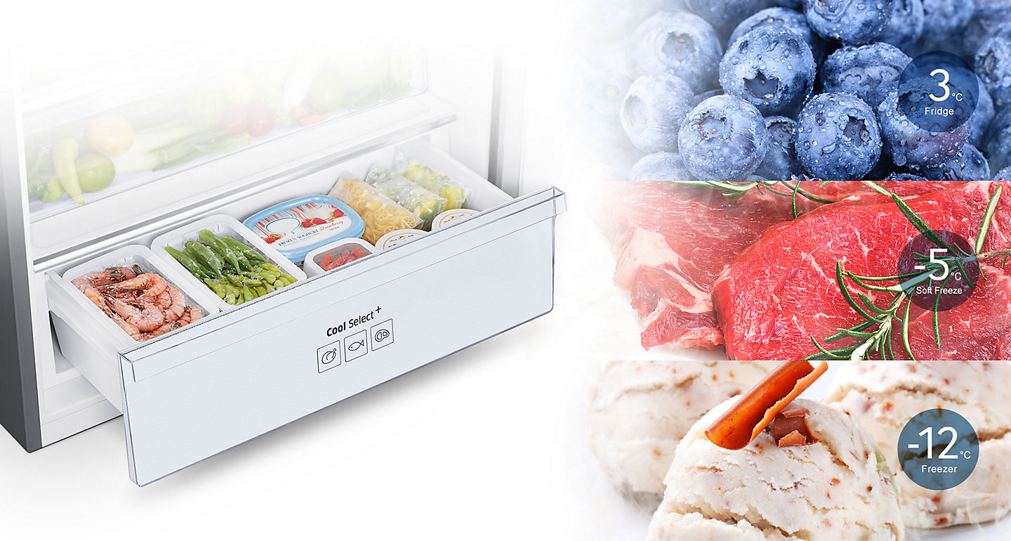 ช่องอัฉริยะ ช่วยเพิ่มความยืดหยุ่นในการจัดเก็บให้เต็มที่ยิ่งขึ้นด้วย CoolSelect Plus เพียงปุ่มเดียว ก็สามารถเปลี่ยนช่องแช่เย็นให้กลายเป็นช่องแช่แข็งได้ โดยสามารถเลือกใช้อุณหภูมิที่เหมาะสม -3(c) -5 (c) หรือ -12 (c)