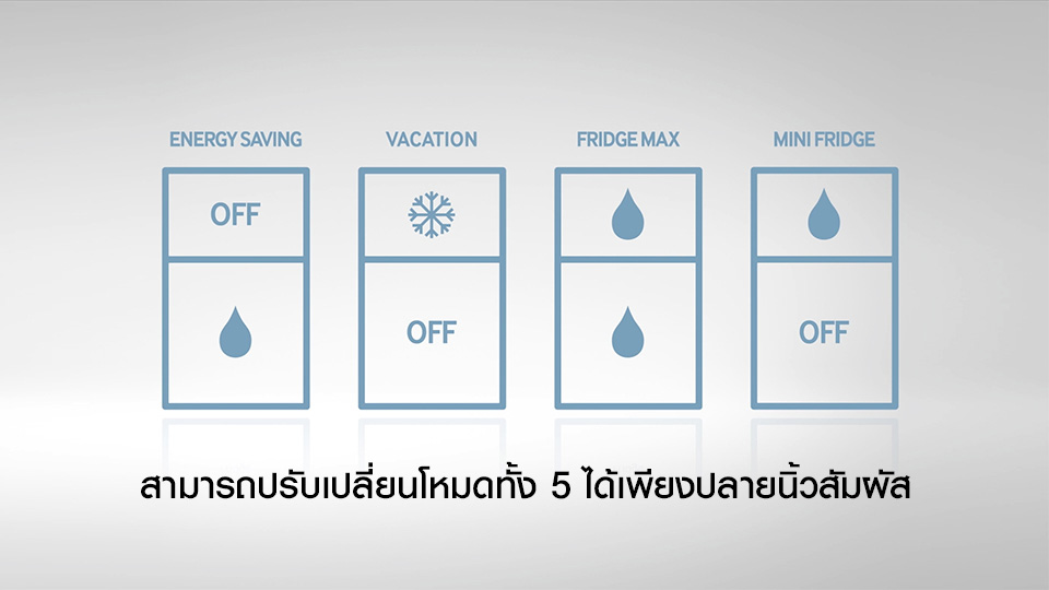 ก็ชีวิตในแต่ละวันนั้นไม่เหมือนกัน ตู้เย็นก็ต้องยืดหยุ่นได้เพื่อรองรับ ด้วยเทคโนโลยี Smart Conversion ที่ถูกออกแบบให้เราสามารถปรับเปลี่ยนการทำงานได้ 5 โหมดตามความต้องการ ช่วยเพิ่มความยืดหยุ่นในการจัดเก็บ โดยสามารถแปลงช่องแช่แข็งให้เป็นช่องแช่เย็น หรือจะเลือกปรับใช้ให้เหมาะสมกับคุณ โดยมีให้เลือกใช้ 5 รูปแบบ