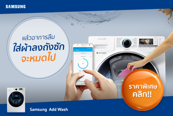 นวัตกรรม Add Wash (ซัมซุง แอดวอช) ทำให้หมดปัญหาเรื่องผ้าลืมใส่ผ้าลงถังซักไปได้เลย