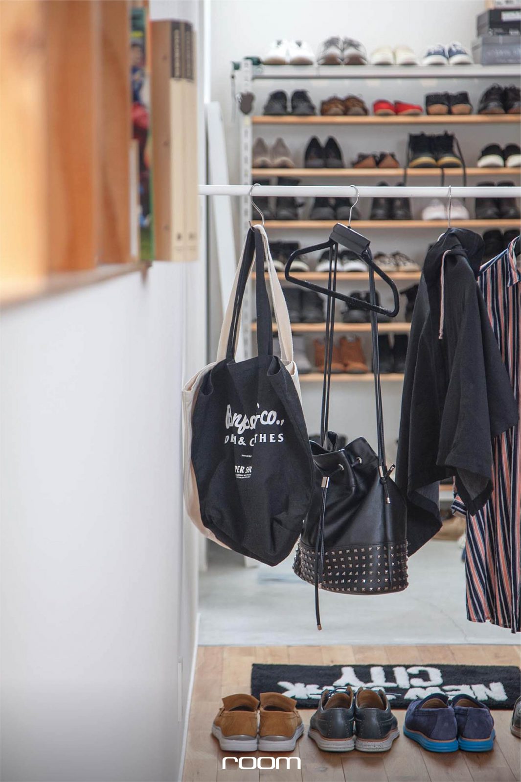 ผู้ออกแบบทั้งสองได้ช่วยกันเล่ารายละเอียดของการออกแบบครั้งนี้ให้ฟังว่า เริ่มแรกนั้นต้องดึงคาแร็คเตอร์ของเจ้าของบ้านออกมาให้ได้มากที่สุด และต้องสอดคล้องกับฟังก์ชันการใช้งาน อย่างชั้นล่างที่ทำเป็นร้านอาหารเพราะเจ้าของบ้านทั้งคู่ชื่นชอบ แต่พอมาเป็นส่วนของห้องพักต้องออกแบบให้ตรงกับคาแร็คเตอร์ของภรรยาคุณมาโกโตะที่มีอาชีพเป็นดีไซเนอร์และเปิดร้านเสื้อผ้าเป็นของตัวเอง เมื่อบวกกับพื้นที่ที่มีขนาดเล็ก จึงจำเป็นต้องตัดส่วนของตู้เสื้อผ้าออกไป และใช้ราวเหล็กทำสีขาวมาใช้แขวนเสื้อผ้าแทน โดยให้เหตุผลว่านอกจากจะแสดงถึงคาแร็คเตอร์ของภรรยาเจ้าของบ้านแล้ว การใช้ราวเหล็กแขวนผ้ายังช่วยให้ห้องดูโปร่งกว่าการใช้ตู้เสื้อผ้า