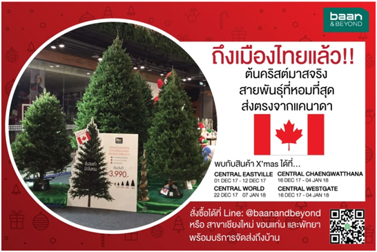 อย่างแรกเลยที่เราอยากแนะนำก็คือ ต้นสนของจริงส่งตรงจากแคนาดา ความพิเศษคือกลิ่นหอมสดชื่นมาก ๆ ซึ่งต้นสนสายพันธุ์ที่บ้านแอนด์บียอนด์นำเข้ามานั้นถือว่าเป็นสายพันธุ์ที่หอมที่สุดในโลกอีกด้วย สามารถนำไปตกแต่งเป็นต้นคริสต์มาสแขวนประดับของชิ้นเล็กๆน่ารัก ที่มากกว่านั้นคือต้นสนนี้ยังช่วยให้บรรยากาศในบ้านหอมสะอาดราวกับว่าอยู่ในบ้านไม้สนเลยทีเดียว สำหรับต้นสนนี้ก็มีให้เลือกทั้งหมด 4 ขนาดด้วยกัน ตั้งแต่ไซส์ S 5-6 ฟุต, M 6-7 ฟุต, L 7-8 ฟุต, XL 8-9 ฟุต ราคาเริ่มต้นที่ 3,990 บาทแถมยังได้รับคูปองส่วนลดสูงสุดถึง 2,500บาท