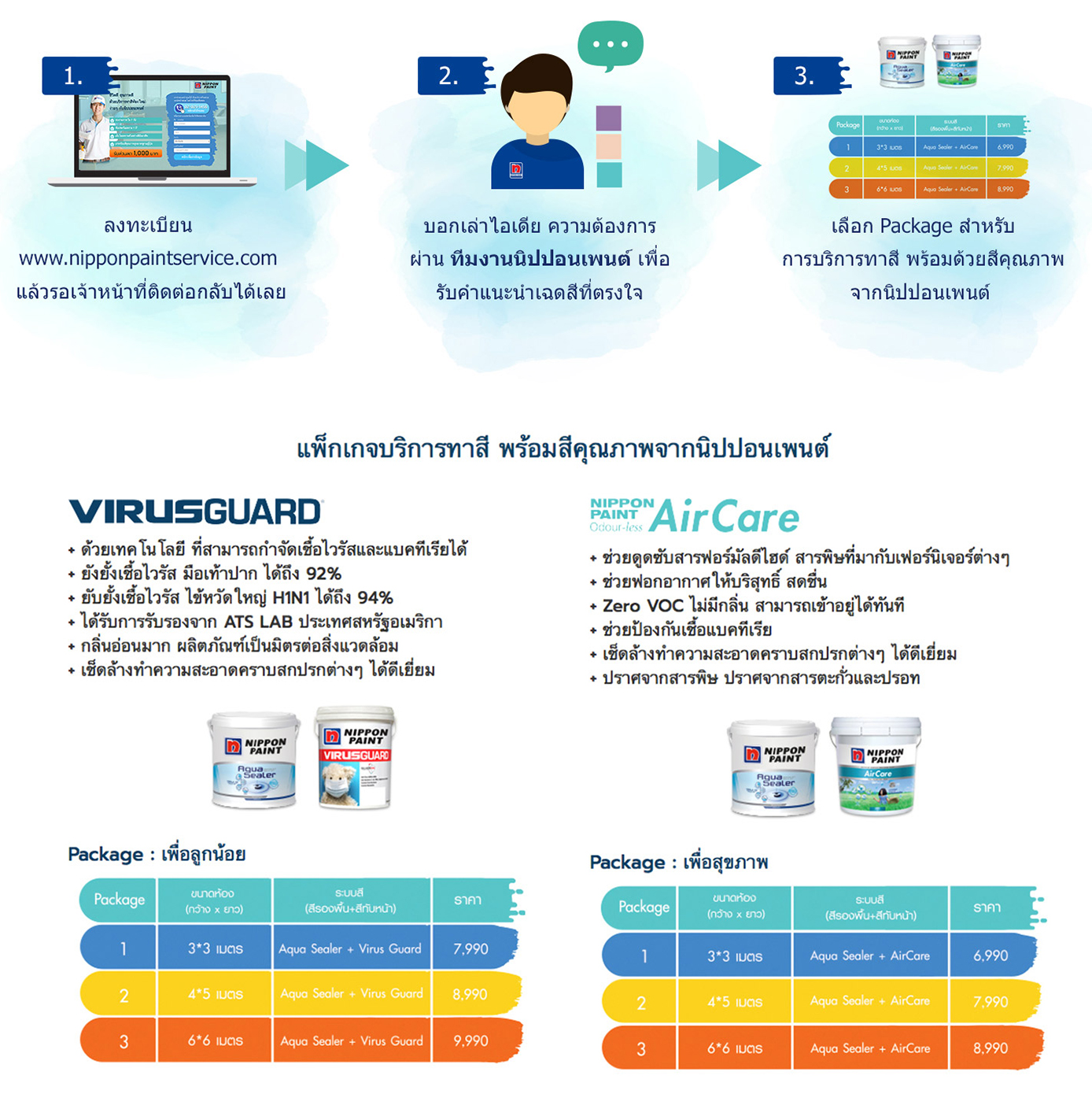 จากที่กล่าวมาข้างต้น ก็อาจจะทำให้เจ้าของบ้าน ที่มีไอเดียเริ่มปวดหัวกันไม่น้อยกับการเนรมิตผนังกันแล้วใช่ไหมละ วันนี้เว๊บไซต์บ้านและสวน ก็ขอนำเสนอบริการที่จะช่วยคุณตอบโจทย์ไลฟ์สไตล์ของสีสันที่คุณชื่นชอบ สำหรับใครที่ไม่ค่อยมีเวลา แต่อยากเปลี่ยนแปลงผนังบ้านให้สวย สดใสถูกใจ เพียงแค่ 3 ขั้นตอนง่ายๆดังนี้