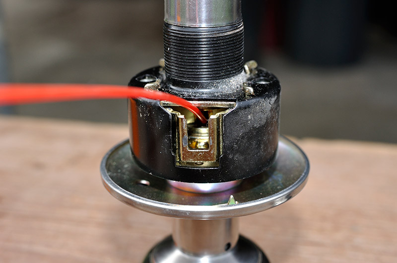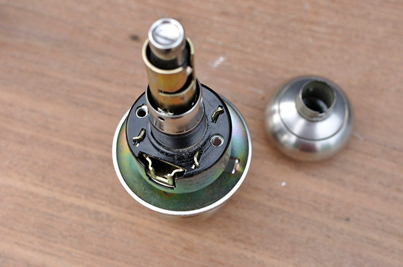 กลไกของลูกบิดประตูถูกครอบไว้ด้วยลูกถ้วยและยึดชิ้นส่วนทั้งหมดไว้อย่างแน่นหนา ไม่มีจุดที่เป็นสกรูให้เราถอดได้เลย