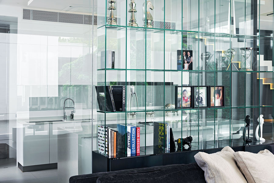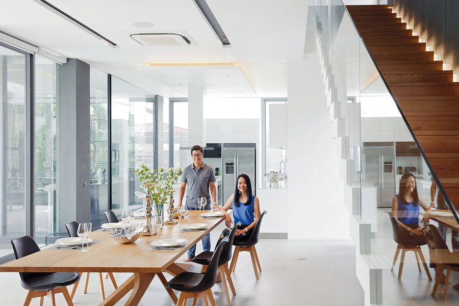 “ผมวางแผนเรื่องการสร้างบ้านหลังนี้เอาไว้ร่วมสิบกว่าปี ใช้เวลาสร้างจริงประมาณสามปีครึ่ง เปลี่ยนช่างไป 3 ชุด เพราะว่าผมมีรายละเอียดเกี่ยวกับการตกแต่งไว้เยอะและค่อนข้างชัดเจน จริงๆ แล้วผมทำงานเกี่ยวกับการเงิน แต่ก็ชอบแต่งบ้านเป็นงานอดิเรก อาศัยดูหนังสือเยอะทั้งนิตยสารบ้านและสวนกับของต่างประเทศ ก็เลยสะสมไอเดียที่ชอบไว้มาโดยตลอด” คุณโจ้-สันติ นิลสุวรรณากุล ประธานเจ้าหน้าที่ฝ่ายบริหาร (Group CEO) แห่ง Kids’ Academy International Pre-School ผู้เป็นเจ้าของบ้านซึ่งหลงรักความเนี้ยบแบบน้อยชิ้นของมินิมัลลิสม์กล่าว