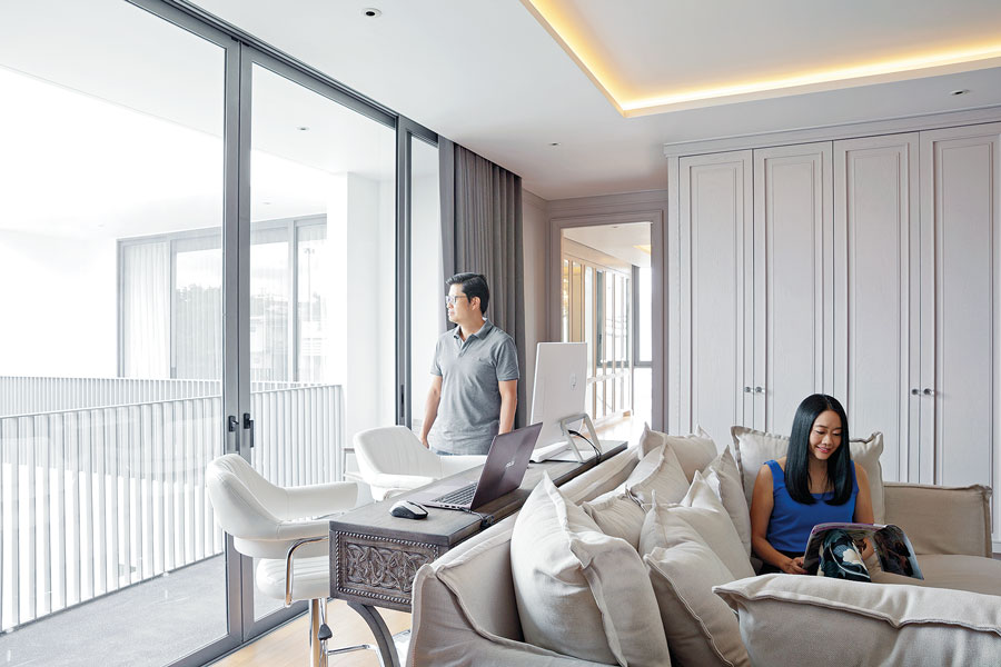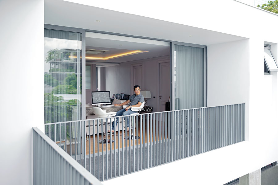 “ผมชอบสไตล์มินิมัลลิสม์มานานแล้ว ชอบให้ทุกอย่างดูเรียบโล่งสะอาดตา ผนังด้านนอกเป็นปูนเปลือยเท่ๆ ตามสไตล์ของทาดาโอะ อันโดะ สถาปนิกญี่ปุ่น เฟอร์นิเจอร์ก็เน้นชิ้นหลักๆ ในแต่ละห้องให้สวยเหมือนบ้านของพวกมาเฟียในหนังอเมริกัน หลายชิ้นเป็นเฟอร์นิเจอร์นำเข้าจากอิตาลี ซึ่งต้องรอนาน 2-3 เดือนกว่าจะได้ แต่ก็ชอบที่เป็นของหายากหรือมีชิ้นเดียวและไม่เหมือนใครดี”