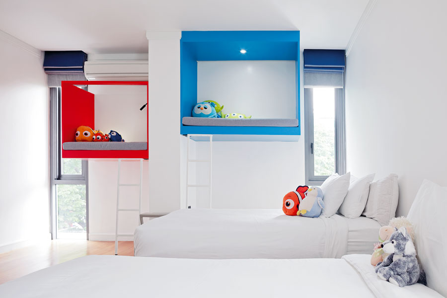 ขณะที่ชั้น 3 มีการปรับเปลี่ยนงานดีไซน์ให้เป็นโมเดิร์นคลาสสิกตามความชอบของ คุณแยม- ลฐิกา นิลสุวรรณากุล ภรรยาและผู้บริหารแห่ง Kids Academy International Pre-School โดยเชื่อมต่ออารมณ์ด้วยโทนสีเทาเท่ๆ แต่เพิ่มเส้นสายลายบัวให้เฟอร์นิเจอร์บิลท์อิน พร้อมชุดโซฟานั่งเล่นขนาดใหญ่แบบ Sweet Living ก่อนจะแยกฟังกชันเป็นห้องนอนส่วนตัวของลูกสาวทั้งสองคนและห้องนอนใหญ่พร้อมห้องแต่งตัวสไตล์ วอล์คอินคลอเซต