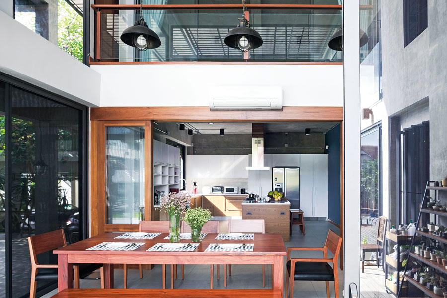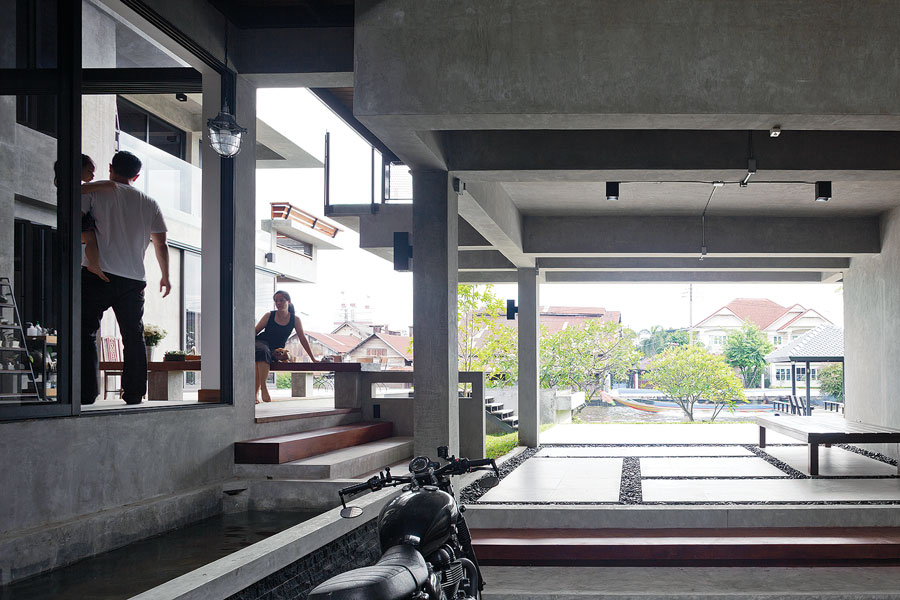 “จริงๆบ้านหลังเดิมก็อยู่ใกล้ๆกัน แต่ไม่ได้ติดริมน้ำ เราฝันอยากมีบ้านที่อยู่ติดคลองแบบนี้มานานแล้ว อีกอย่างเมื่อแต่ละคนโตขึ้น อย่างน้องชายที่มีครอบครัวแล้ว ที่ทางในบ้านหลังเดิมก็เริ่มไม่พอใช้งาน พอได้จังหวะคุณแม่ขอซื้อที่ตรงนี้ได้ ก็เลยเริ่มทำบ้านค่ะ” คุณเฟิร์น – นิษณา หน่อชูเวช เจ้าของบ้านเริ่มต้นเล่าให้เราฟัง
