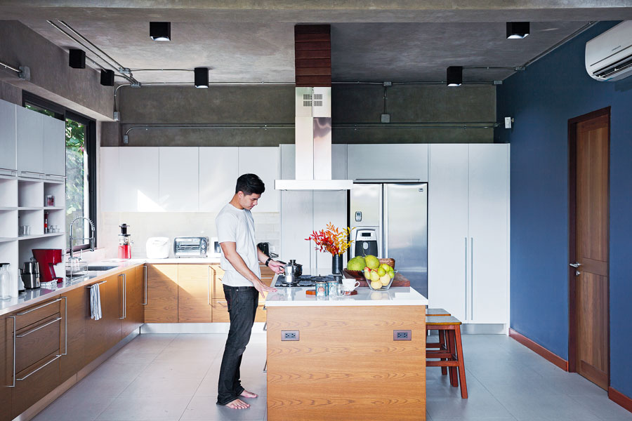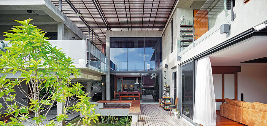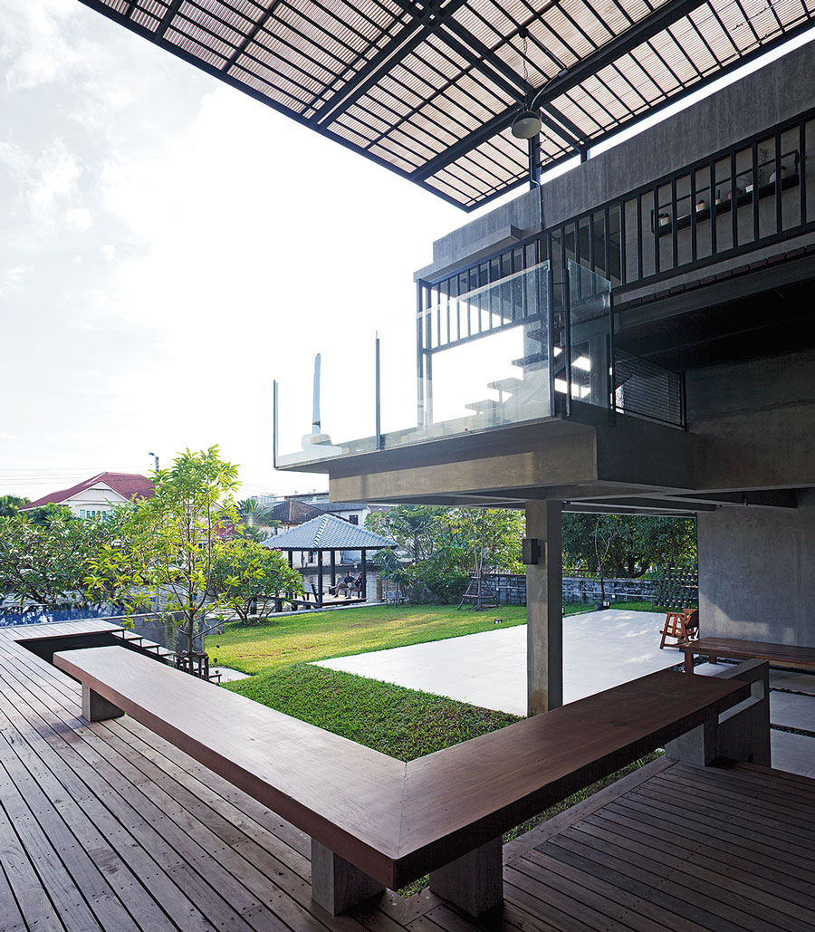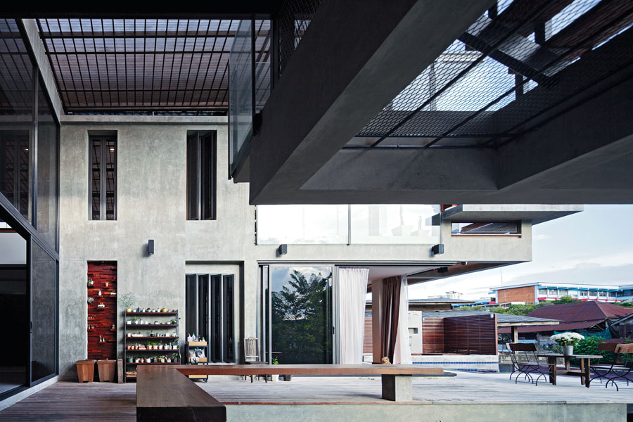 บ้านหลังนี้จึงเป็นการผสมผสานวัสดุที่ผ่านการปรุงแต่งน้อยที่สุด โดยมีวัสดุหลักเป็นคอนกรีต เหล็ก และไม้