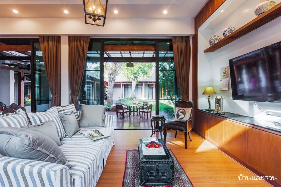 บ้านไม่ใช่แค่สิ่งก่อสร้าง แต่ยังเป็นที่รวมหัวใจของทุกคนในครอบครัว เหมือนบ้านในจังหวัดเชียงใหม่หลังนี้ แม้จะสร้างขึ้นมาแทนบ้านหลังเก่าที่ทรุดโทรมไปตามกาลเวลา แต่ก็หลอมรวมสมาชิกทุกคนให้อยู่ร่วมกันเหมือนเมื่อก่อนได้เป็นอย่างดี คุณฐาปนันท์ สุวิทยาลังการ หนึ่งในสมาชิกของบ้านนี้ เล่าให้ฟังว่า “บ้านเดิม คุณพ่อ (พลเอกสีมา ปาณิกบุตร ผู้ล่วงลับไปแล้ว) สร้างเป็นบ้านไม้สองชั้นทั้งหลัง แม้กระทั่งหลังคาที่เป็นแป้นเกล็ดและคลุมต่ำในลักษณะคล้ายสวิสชาเลต์ก็ยังเป็นไม้ ด้วยความที่เป็นไม้ทั้งหลัง ก็ทำให้ภายในบ้านค่อนข้างทึบ ต้องเปิดไฟเยอะมาก เมื่ออยู่มานานหลังคาแป้นเกล็ดก็ผุ มีตะไคร่เกาะ ฝนตกก็รั่วเข้าในบ้าน เลยคิดว่าระหว่างซ่อมกับสร้างใหม่อะไรจะคุ้มกว่ากัน จึงประชุมกันทั้งคุณแม่ (คุณหญิงพรรณางค์ ปาณิกบุตร)และน้องชาย (พลเอกณรงค์ฤทธิ ปาณิกบุตร) เห็นพ้องกันว่ารื้อแล้วสร้างใหม่ดีกว่า ที่สำคัญคือ น้องชายอยากให้คุณแม่ซึ่งอายุมากแล้วไม่ต้องเดินขึ้น-ลงบันได จึงทำเป็นบ้านชั้นเดียวค่ะ” อ่านต่อ
