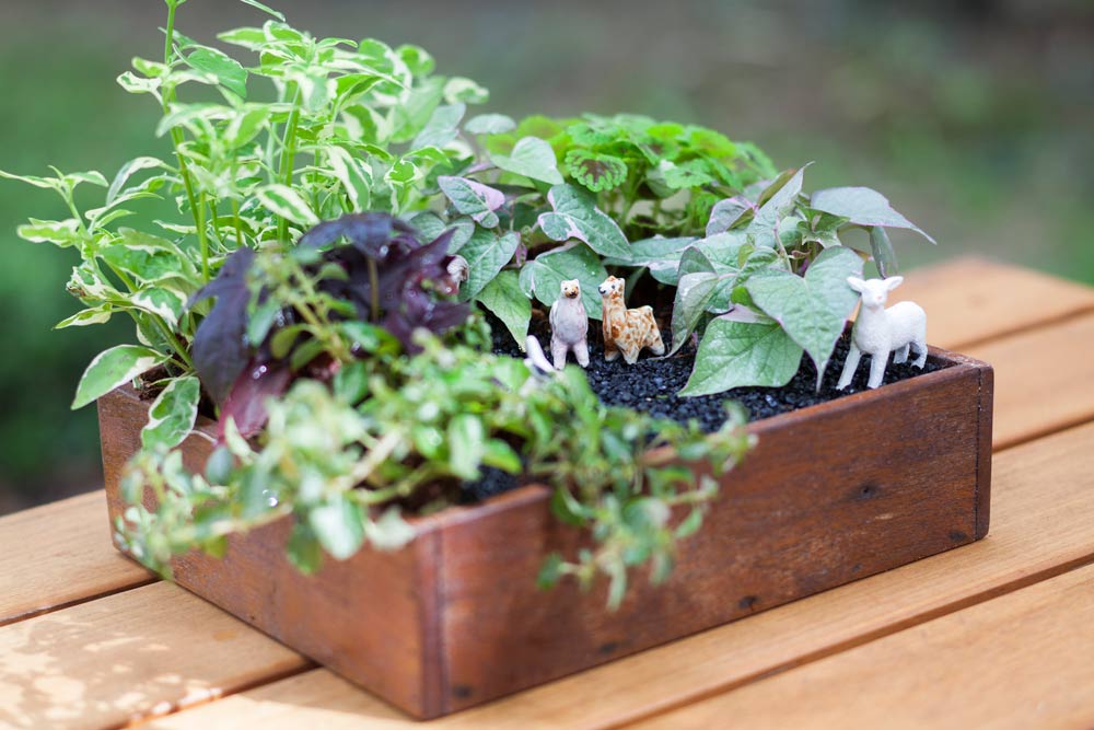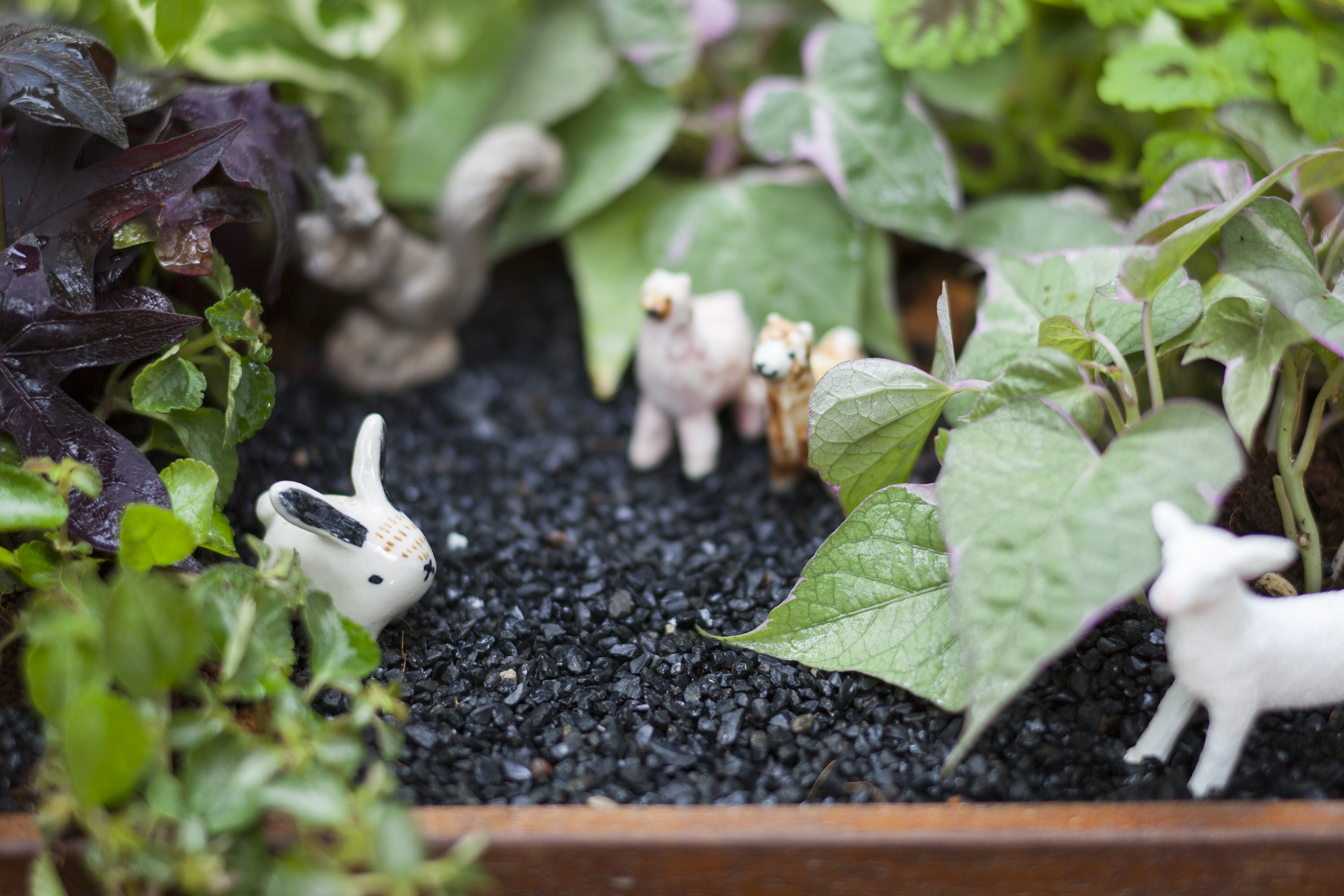 6.วางตุ๊กตาสัตว์ตกแต่งลงไปสร้างบรรยากาศเหมือนป่าเล็กๆ ที่เหล่าสัตว์ทั้งหลายมาชุมนุมกัน