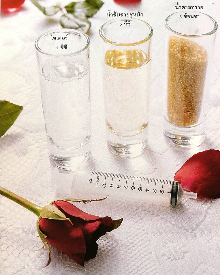 -ในการตวงวัดในปริมาณเล็กน้อย ให้ใช้กระบอกฉีดยาขนาดเล็กซึ่งหาซื้อได้จากร้านขายยาทั่วไป