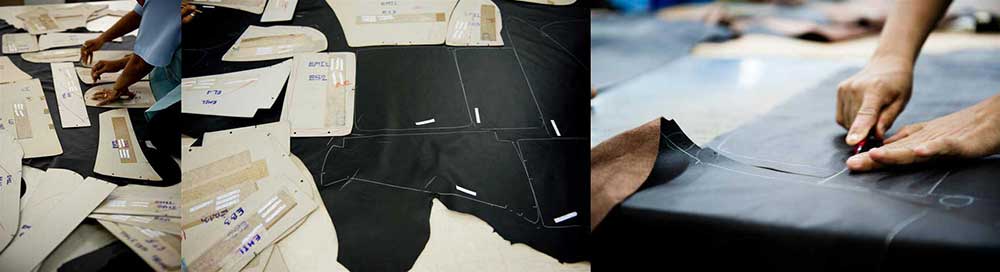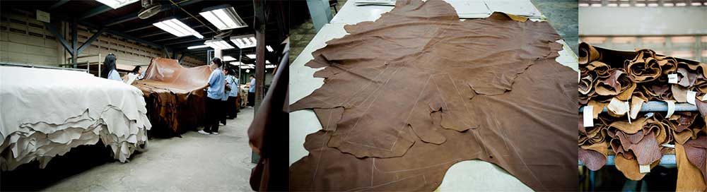 ทุกขั้นตอนในการทำโซฟาหนังของที่นี่ ใช้การทำด้วยมือทั้งหมด เริ่มต้นตั้งแต่การวัด และตัดหนัง สำหรับหุ้มบุกับโครงโซฟา โดยมีมาตรฐานของแพตเทิร์นตามรูปแบบของโซฟา และขนาดของตัวโซฟา เบาะ และพนักที่แตกต่างกันไป ทั้งนี้ มาตรฐานที่แน่นอนในทุกแบบ ทำให้สามารถเก็บขอบริมได้อย่างพอดีและสวยงามในขั้นตอนการเย็บต่อไป