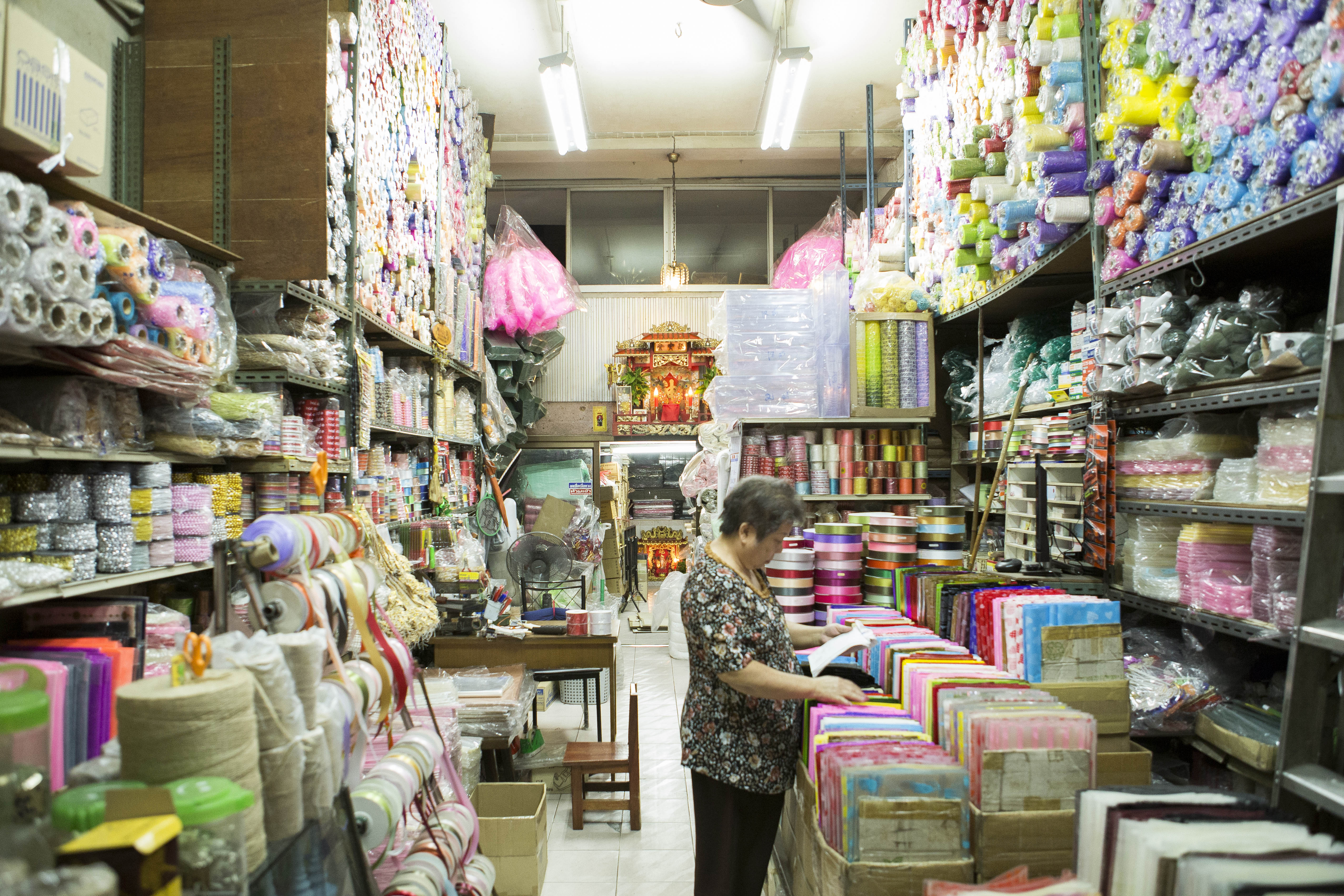 เดินออกจากร้านด้วยความอิ่ม ถัดมาอีกหน่อย เจอร้านขายอุปกรณ์ เชือก ริบบิ้น กระดาษห่อดอกไม้ มีหมดจ้า