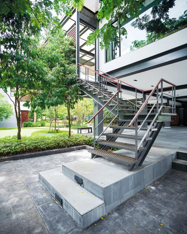 “เหล็กที่ใช้ทำเสา คาน บันได และระเบียงเป็นวัสดุเหลือใช้จากธุรกิจก่อสร้างขนาดใหญ่ซึ่งเป็นกิจการของเจ้าของบ้าน ผมจึงต้องดีไซน์สเกลของบ้านใหม่ทั้งหมด เพื่อให้เข้ากับวัสดุที่มีอยู่”
