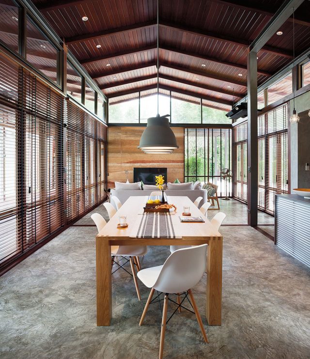 เมื่อการผสมผสานเกิดเป็นสไตล์เฉพาะตัวและไม้มักกลายเป็นวัสดุสำคัญอยู่บ่อยครั้ง เพราะสามารถหาได้ง่ายในทุกท้องถิ่น อีกทั้งช่างในบ้านเราก็มีความชำนาญในวัสดุชนิดนี้ จึงพบเห็นไม้ในงานสไตล์ต่างๆ อยู่ทั่วไป เพราะนอกจากความสวยงามของลายเสี้ยนตามธรรมชาติแล้ว สีและผิวสัมผัสของไม้ยังสร้างความอบอุ่นและให้ความรู้สึกถึงคำว่า “บ้าน” ได้มากกว่าวัสดุชนิดอื่น ทำให้เมื่อจับคู่กับวัสดุชนิดอื่น เช่น คอนกรีต ก็ช่วยให้รู้สึกเป็นกันเอง เพราะไม้เข้าไปลดความแข็งของคอนกรีตลงนั่นเอง และถึงแม้เราจะพบไม้ในสไตล์ต่างๆ แต่การจับคู่วัสดุอื่นๆ กับไม้นั้นไม่ง่าย ต้องอาศัยประสบการณ์ของผู้ออกแบบและเจ้าของบ้านในการเลือกใช้ชนิดของไม้และปริมาณให้เหมาะสม จนเกิดเป็นความร่วมสมัยในสไตล์เฉพาะของเจ้าของบ้านขึ้นมา