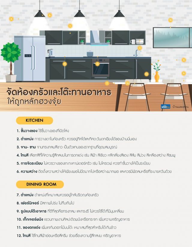 ที่อยู่อาศัยสมัยใหม่ถูกออกแบบให้จำกัดมากขึ้น บ้านหรือคอนโดที่เคยแบ่งพื้นที่ห้องครัวและโต๊ะทานข้าวชัดเจน ปัจจุบันถูกสร้างสรรค์ให้อยู่ในพื้นที่บริเวรเดียวกัน เพื่อง่ายต่อการดูแลและจัดวางตำแหน่ง แต่รู้หรือไม่ว่า แม้จะเป็นห้องที่ใช้ประกอบและรับประทานอาหารในเวลาเพียงไม่นาน แต่ก็ควรดูแลจัดวางให้ถูกหลักฮวงจุ้ยด้วยเช่นกัน
