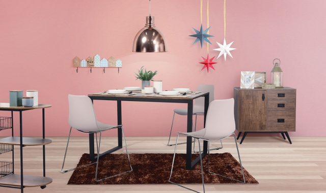 ห้องทานข้าวไม่จำเป็นต้องออกแบบผนังโล่งสะอาดตา เราสามารถแขวนภาพติดผนังที่เป็นงานศิลปะสร้างสรรค์หรือติดผนังกระจกเพื่อเพิ่มความเจริญอาหารในการรับประทานได้เช่นกัน
