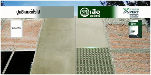 ข้อต่อมาคือ พิจารณาถึงคุณสมบัติของปูนฉาบ ที่ต้องมีระยะเวลาการแห้งตัวที่เหมาะสม เพราะหากปูนฉาบแห้งเร็วจนเกินไป จะส่งผลให้เกิดรอยแตกลายงา ทางปูนเสือ จึงได้คิดค้น “ปูนเสือ มอร์ตาร์ สูตรแพลทินัม เอ็กซ์เพิร์ท” นวัตกรรมปูนฉาบสำเร็จรูปที่ให้ความใส่ใจในระดับโมเลกุล ด้วย Elastic Molecule Technology ที่ช่วยเพิ่มความยืดหยุ่นให้กับผนังปูนฉาบ ร่วมกับสารอุ้มน้ำสูตรพิเศษ ที่จะทำให้เนื้อปูนสามารถกักเก็บน้ำไม่ให้ระเหยเร็วจนเกินไป ประสิทธิภาพของเสือ เอ็กซ์เพิร์ท ทำให้ลดโอกาสการเกิดรอยแตกร้าวได้มากกว่า 2 เท่า เพิ่มความแข็งแรงให้กับผนังบ้าน ให้ผนังบ้านเนียนสวยตลอดอายุการใช้งาน