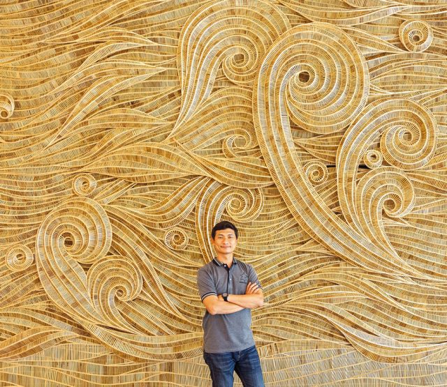 “คราฟต์ก็มาจากตัวตนของชุมชนเรานี่แหละ การทำผลิตภัณฑ์ที่มีเรื่องราวของท้องถิ่น ทำให้งานของเราโดดเด่น และเป็นการเพิ่มมูลค่าได้อีกด้วย แต่สิ่งที่จะต้องปลูกฝังเพิ่มเติมก็คือการนำสุนทรียศาสตร์ทั้งแบบตะวันตกและตะวันออกมาใช้ควบคู่กับการทำงานประติมากรรมที่เป็นสไตล์ของเราเอง อย่างผลงานของเราเป็นไม้ไผ่ที่ยึดกันด้วยการผูกการมัดแบบเส้นตั้งเส้นนอน ในฐานะนักออกแบบ เราจำเป็นต้องคิดตั้งแต่การเตรียมวัตถุดิบ และต้องแปรรูปให้คนลืมความเป็นไม้ไผ่ให้ได้ สิ่งสำคัญคือจะต้องฝึกปฏิบัติให้เยอะที่สุดเท่าที่ทำได้ เพราะการที่เราผ่านจุดยากๆมาจะทำให้เราสอนทีมงานได้ อีกทั้งต้องเข้าใจธรรมชาติของคนทำงานหัตถกรรม ตลอดจนเข้าใจบริบทในด้านต่างๆที่เปลี่ยนแปลงอยู่ตลอดเวลา”
