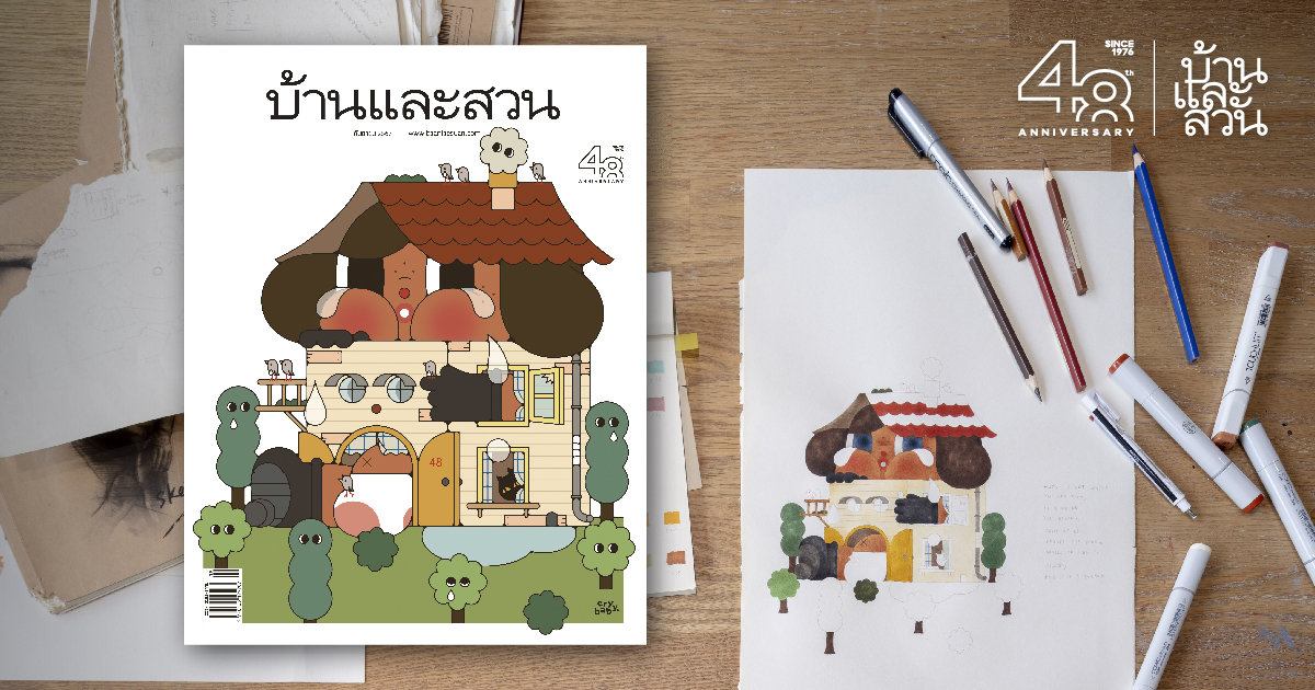 ฉลองครบรอบ 48 ปี นิตยสารบ้านและสวน ฉบับเดือนกันยายนนี้ ด้วยภาพปกพิเศษ ผลงานการวาดของศิลปิน Molly หรือ คุณมด-นิสา ศรีคำดี ผู้สร้างสรรค์ Crybaby ซึ่งชวนให้มาค้นพบความหมายของคำว่า “บ้าน” ที่อยู่ภายในใจตัวเองไปด้วยกัน