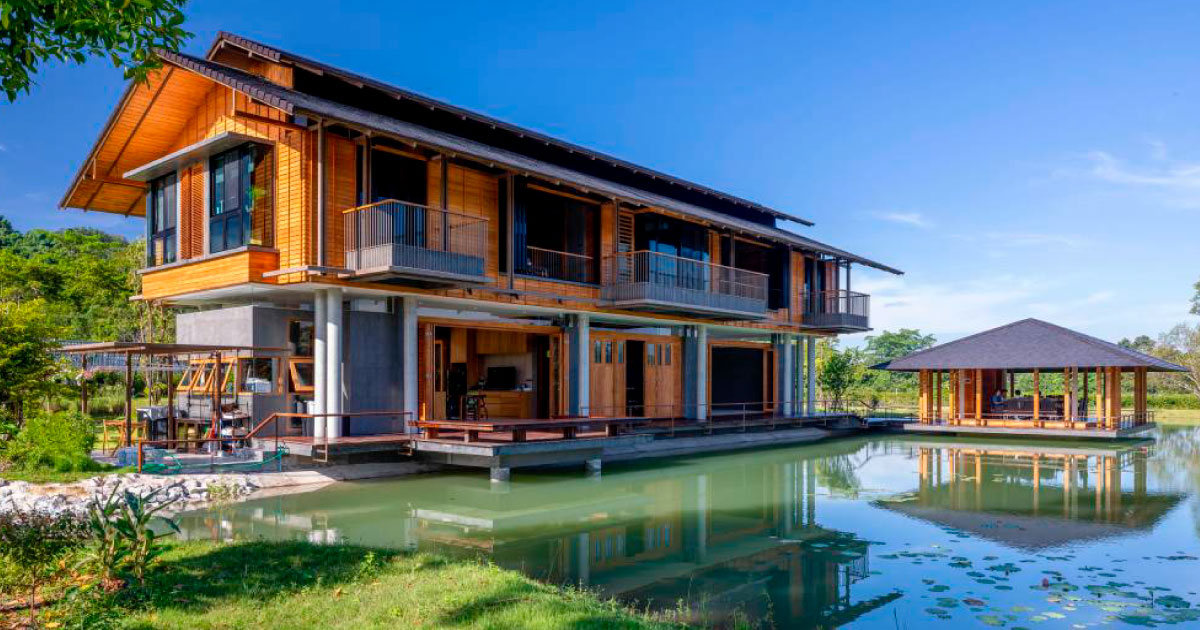 WONDERING CAFE & BAKESHOP ร้านขนมที่โดดเด่นด้วยสีสันพาสเทลสะดุดตา ช่วยให้ครัวซองต์ ทาร์ต เค้ก กับขนมอบอีกนับไม่ถ้วน เสริมทัพด้วยเครื่องดื่มมากมายหลายเมนู ดูยิ่งน่ารับประทานขึ้นอีกหลายเท่า DESIGNER DIRECTORY ออกแบบ: PHTAA Living Design นอกจากบรรดาขนมที่การันตีความอร่อยกันมานักต่อนัก ในร้านยังน่านั่งด้วยบรรยากาศการตกแต่งที่ตั้งใจอยากให้แขกผู้มาเยือนเสมือนได้ย้อนกลับไปสู่ความสนุกสนานในวัยเยาว์ บรรยากาศโดยรวมจึงเจือไปด้วยกลิ่นอายสไตล์วินเทจ โดยจะเห็นได้จากสีชมพูพาสเทล และสีน้ำเงิน ที่ผู้ออกแบบได้นำทั้งสองสีนี้มาสร้างสรรค์ร่วมกันให้บรรยากาศของร้านดูสดใส โดยการไล่สีด้วยการพ่นไปบนผนังที่ทำจากไม้ซีกมาตีเรียงต่อกันเป็นแนว ซึ่งเป็นวิธีที่ทำให้พื้นผิวของผนังดูด้าน และให้ความรู้สึกอบอุ่นไปพร้อมกัน อีกสิ่งที่เป็นความโดดเด่นในการออกแบบตกแต่งร้าน คือการใช้เส้นโค้งเป็นองค์ประกอบหลัก ปรากฏให้เห็นผ่านพื้นผิว และวัสดุ ตั้งแต่ประตูด้านหน้าที่เด่นด้วยรูปทรงแบบซุ้มโค้ง เปิดเข้ามาจะเจอกับผนังด้านหลังเคาน์เตอร์ที่ทำเป็นรูปโค้งเรียงคู่กัน รวมไปถึงแผ่นโปร่งแสงทรงครึ่งวงกลม และฝ้าเพดานที่ทำจากยิปซัมดัดโค้งวางต่อกันไปทั่วทั้งร้าน ไปจนจรดผนังไม้ซีกที่เป็นเส้นโค้งเล็ก ๆ ต่อกันคล้ายลูกฟูกซึ่งมีพื้นผิวเป็นลอนโค้งดูนุ่มนวลสวยงาม และอีกจุดเด่นของร้าน คงหนีไม่พ้นเคาน์เตอร์หินขัดสีขาวขนาดใหญ่ที่อยู่กลางร้าน ใช้เป็นทั้งที่สั่งขนม วางอุปกรณ์และเครื่องทำกาแฟ และยังแบ่งพื้นที่มาใช้เสริมเป็นเคาน์เตอร์บาร์ได้อีกด้วย นอกจากจะรองรับการใช้งานหลากหลายฟังก์ชันแล้ว เคาน์เตอร์หินขัดยังมีความแข็งแรง ทนทาน ทำความสะอาดง่าย เรียกว่าตอบโจทย์ร้าน Wondering Cafe & Bakeshop ได้ครบทั้งภาพลักษณ์ และฟังก์ชันเลยทีเดียว IDEAS TO GRAB A […]