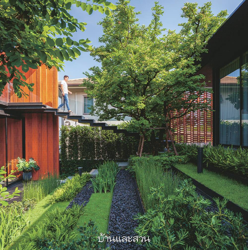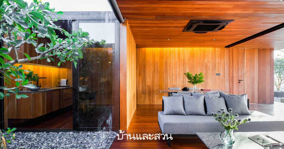 บ้านโมเดิร์น มีคอร์ตยาร์ด หลังนี้มีส่วนผสม 3 อย่าง ได้แก่ พื้นที่อยู่อาศัย คอร์ตยาร์ดกลางบ้าน และอาร์ตแกลเลอรี่ในบ้าน
