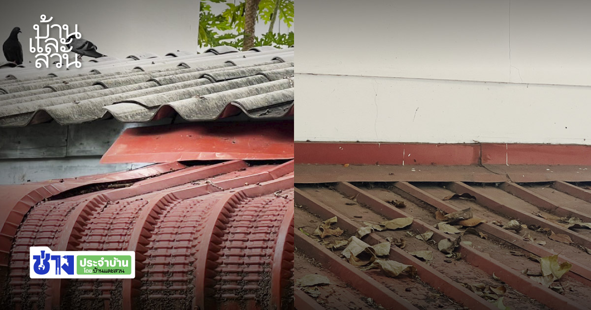การติดตั้ง แฟลชชิ่ง โดยยาแนวซิลิโคนปิดรอยต่อมักใช้งานได้ดี 3-4 ปี ถ้ารอยต่อนี้ปะทะแสงแดดจัด ซิลิโคนก็จะเสื่อมสภาพเร็ว ทำให้น้ำรั่วซึมได้ง่าย ติดตั้งแฟลชชิ่งไม่ได้มาตรฐาน ถ้าช่างทำรอยต่อหลังคาโรงรถกับตัวบ้านด้วยการใช้ แฟลชชิ่ง (Flashing-แผ่นโลหะพับเป็นรูปตัวแอล) ปิดทับตรงรอยต่อแล้วใช้สกรูยึดให้ติดกับตัวบ้าน และยาแนวซิลิโคนปิดรอยต่อเพื่อกันน้ำฝนรั่วซึม การติดตั้งแบบนี้มักใช้งานได้ดี 3-4 ปี แต่ถ้ารอยต่อนี้ปะทะฝนแรง แสงแดดจัด ซิลิโคนก็จะเสื่อมสภาพเร็ว ทำให้น้ำรั่วซึมได้ง่าย a แฟลชชิ่ง/ b ยึดสกรู/ c ยาแนวซิลิโคน/ d ผนังบ้าน/ e หลังคาโรงรถส่วนต่อเติม การแก้ไข สามารถแก้ไขได้ด้วยการติดตั้งแพลชชิ่งให้ถูกต้องตามวิธีการดังนี้ a กรีดร่องที่ผนังเป็นรูปตัว (V) b พับปลายแผ่นโลหะแฟลชชิ่งเป็นร่องตัววี (V)ให้ติดตั้งพอดีกับร่องที่ผนัง c ยาแนวตลอดแนวรอยต่อด้วยวัสดุยาแนวชนิดพอลิยูรีเทน ซึ่งทนทานและยืดหยุ่นมากกว่าซิลิโคน d เลือกใช้แผ่นสเตนเลสหรือแผ่นเหล็กอบสีที่ได้มาตรฐานแทนการใช้สังกะสีซึ่งผุกร่อนเร็ว e ยิงสกรูยึดแฟลชชิ่งกับผนังทุกระยะ 30-40 เซนติเมตร เรื่อง : ศักดา ประสานไทยภาพประกอบ : คณาธิป จันทร์เอี่ยม […]
