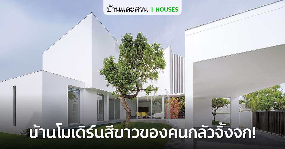 บ้านโมเดิร์นสีขาว มีผนังระนาบเป็นช่องเปิดด้านข้าง