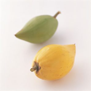 ผล: ผลรูปรี ปลายงอนดูคล้ายมะม่วง มีขั้วผลขนาดใหญ่ เมื่อสุกมีสีเหลืองสด เนื้อนุ่มและมีกลิ่นหอม