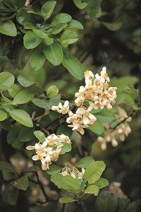 ใบ: ใบรูปรี สีเขียวเข้มเป็นมัน เมื่อส่องแสงจะเห็นต่อมน้ำมันกระจายทั่วใบ ก้านใบที่ติดกับแผ่นใบจะแผ่ออกเป็นแผ่นคล้ายปีก ติดกับแผ่นใบ
