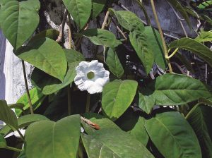 ดอก: ช่อดอกออกจากซอกใบเป็นกระจุก มี 4-6 ดอก แต่ละดอกมีกลีบเลี้ยง 5 กลีบ กลีบดอกเชื่อมติดกันเป็นรูปกรวย มี 5 กลีบ สีขาวและสีม่วง