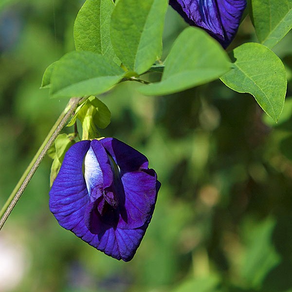 ดอก: ออกดอกเดี่ยวหรือเป็นคู่ตามซอกใบ ดอกรูปดอกถั่ว มีทั้งดอกชั้นเดียวและดอกซ้อน มี 5 กลีบ สีขาว ฟ้าหรือม่วง กลีบชั้นนอกมีขนาดใหญ่ กลางกลีบมีแต้มสีเหลือง