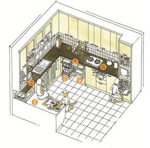 ในบ้านที่คุณตาคุณยายชอบทำอาหารเอง นอกเหนือไปจากการออกแบบครัวที่จัดวางตามหลักการออกแบบที่มักวางอุปกรณ์หลัก 3 อย่างคือ อ่างล้าง เตา และตู้เย็นเป็นรูปสามเหลี่ยมแล้ว ก็ต้องให้ความสำคัญกับความสะดวกและปลอดภัยในการใช้งานเป็นพิเศษ ดังนี้