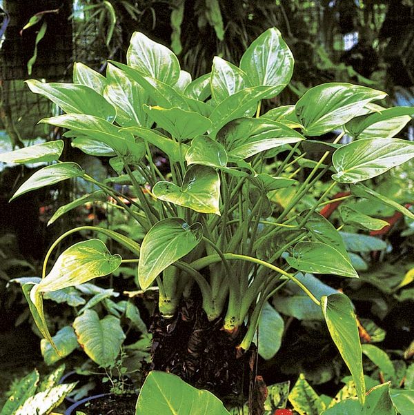 ใบ: เดี่ยว รูปรี ด้านบนสีเขียวปนเทาเงินและด่างขาวถึงครีมจากขอบใบเข้าไปกลางใบ แต่ละใบไม่สม่ำเสมอกัน
