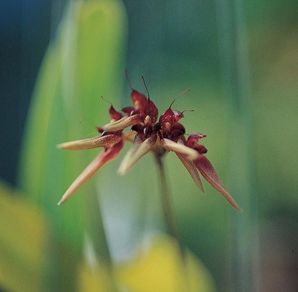 ดอก: เป็นช่ออยู่ที่ปลายก้านสีเขียว ยาวตรง เป็นเหลี่ยมหรือเป็นเส้นเล็กๆ ตามยาว ใบประดับสีน้ำตาลหรือน้ำตาลอ่อนซ้อนกันเป็นช่อกลมรี ยาวประมาณ 0.5-1 เซนติเมตร ดอกเล็กๆ สีเหลืองออกจากซอกกาบใบ มี 3 กลีบ ปลายกลีบจักแหลม เกสรเพศผู้สีเหลืองจำนวนมาก ออกดอกเดือนกรกฎาคม-กุมภาพันธ์