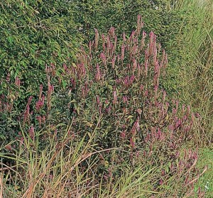 ดอก: ช่อดอกเป็นแท่งกลม ตั้งตรงขึ้น ยาว 5-15 เซนติเมตร ดอกย่อยอยู่ติดกับแกนช่อดอกหนาแน่น ส่วนปลายกลีบสีชมพูม่วงหรือม่วงแดง ออกดอกฤดูหนาว-ฤดูร้อน