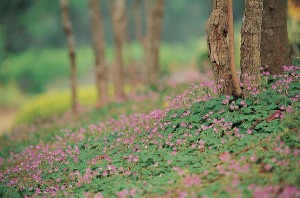 ดอก: ช่อดอกมีก้านยาวชูสูงขึ้น ดอกรูปถ้วยขนาดเล็ก สีชมพูถึงชมพูม่วง ดอกดกในฤดูฝน