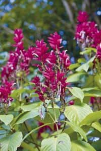 ดอก: ออกเป็นช่อกระจะที่ปลายยอด ชูสูง 20 – 22 เซนติเมตร แต่ละช่อมีใบประดับสีแดง ดอกย่อยสีขาว กลีบดอกเชื่อมติดกันเป็นหลอดยาว ทยอยบานได้นาน ออกดอกเดือนพฤศจิกายน – กุมภาพันธ์