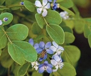 ดอก: ออกเป็นช่อกระจุกตามซอกใบใกล้ปลายยอด กลีบดอก 5 กลีบ ดอกบานมีเส้นผ่านศูนย์กลาง 2 – 2.5 เซนติเมตร บานวันแรกสีฟ้าอมม่วง จากนั้นสีจะซีดลงเป็นสีขาว เกสรสีเหลืองเห็นเด่นชัด มีกลิ่นหอมอ่อนๆ ออกดอกเดือนสิงหาคม – มกราคม