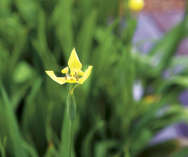 ดอก: ช่อดอกเป็นช่อกระจุกออกจากซอกใบ ชูตั้งขึ้น ดอกขนาด 5 – 8 เซนติเมตร กลีบดอกบาง มี 3 กลีบ สีเหลือง โคนกลีบมีจุดเล็ก ๆ สีน้ำตาล ดอกบานเพียงวันเดียวตั้งแต่ช่วงสายถึงบ่าย ทยอยบานทีละ 1 – 2 ดอก แต่ละช่อทยอยบานนานหลายสัปดาห์ ออกดอกตลอดปี แต่ดอกดกในช่วงฤดูหนาว