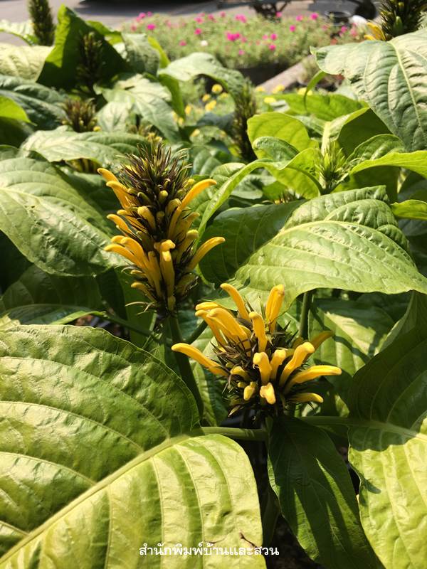 ช่อดอก: สมบูรณ์เพศ ออกระหว่างกาบใบ ยาว 30 เซนติเมตร
