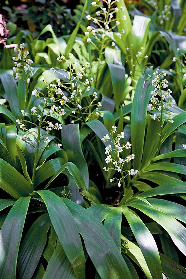 ดอก: เป็นช่อกระจะออกที่ปลายยอด ยาว 30 เซนติเมตร ชูสูงขึ้น ดอกเล็ก สีขาวนวล ออกดอกตลอดปี