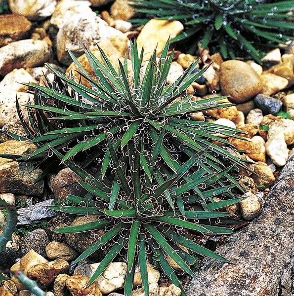 ลำต้น: ลูกผสมของ A. filifera กับ A. schidigera เจริญเป็นพุ่ม เส้นผ่านศูนย์กลางทรงพุ่ม 20 – 30 เซนติเมตร