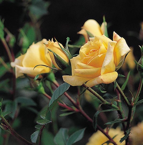 ดอก: เป็นช่อ 3-7 ดอก ดอกบานขนาด 4-5 ซม. สีเหลือง มีสีแดงเรื่อ จางลงเป็นสีครีม ซ้อนกัน 15-25 กลีบ มีกลิ่นหอมอ่อน อัตราการเจริญเติบโต: ปานกลาง